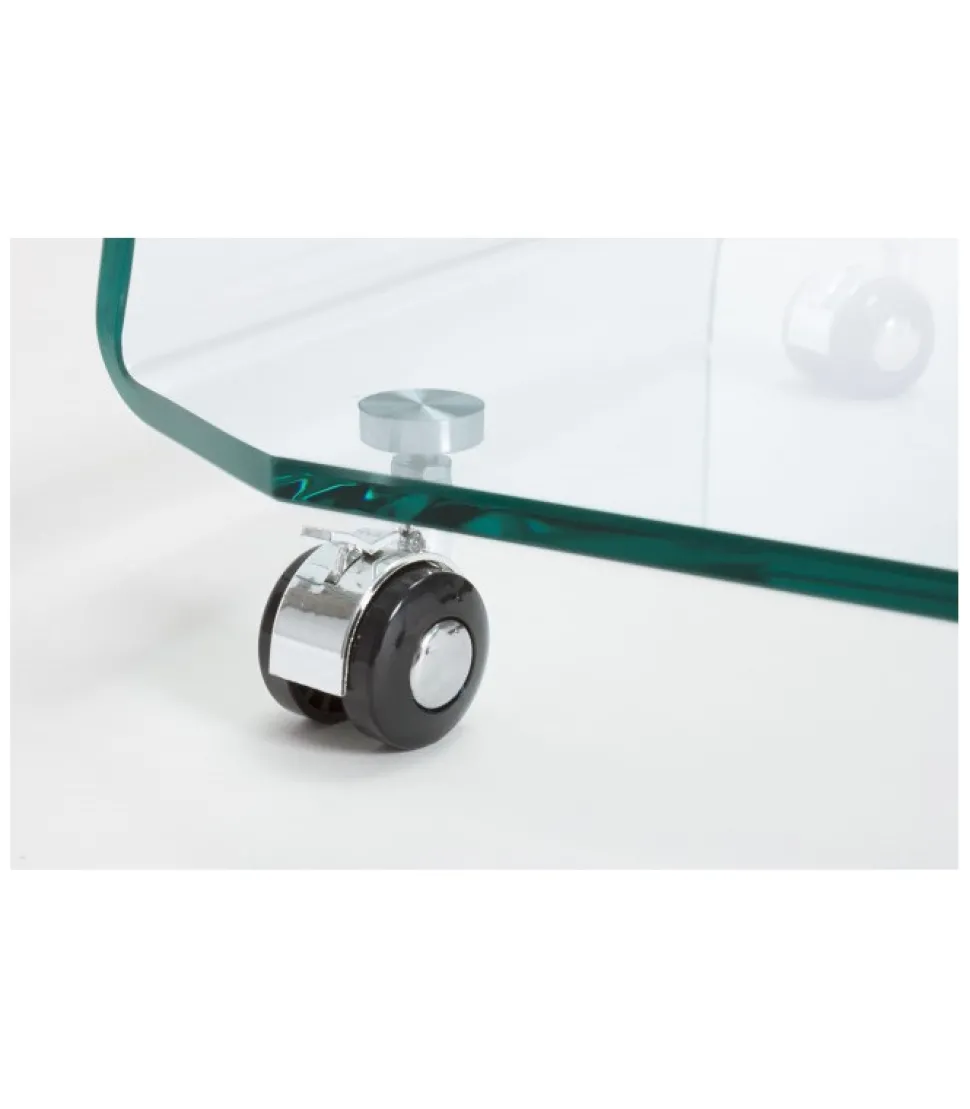 Tavolino C-Ruote Iride Qu Vtvetro Non Temperato Sp 10Mm- Ruote In Plastica(Nylon) Da Assemblare.Dimensioni:45(L) – 45(P) – 60(H)