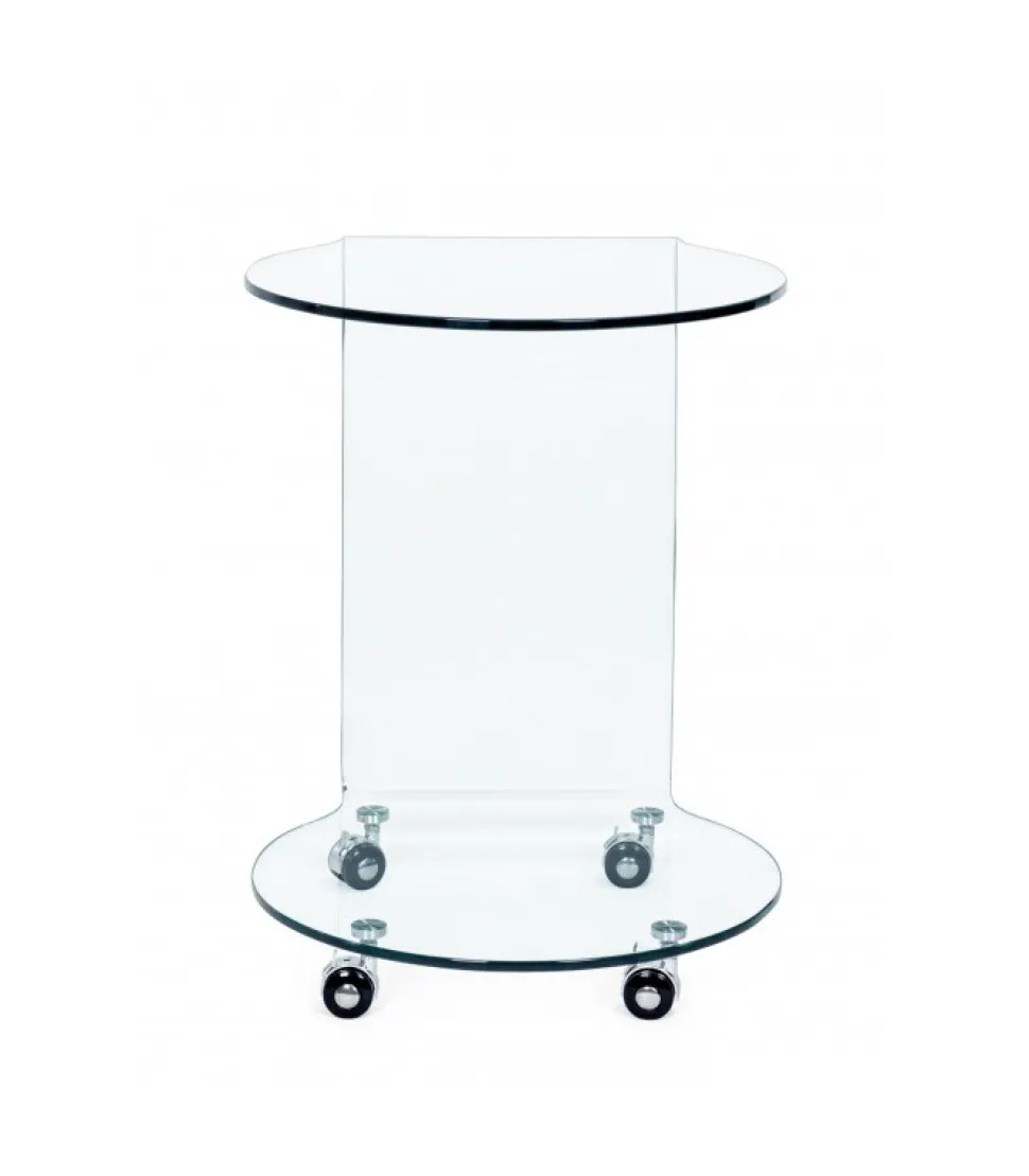 Tavolino C-Ruote Iride To Vtvetro Non Temperato Spessore 10Mm- Ruote In Plastica(Nylon) Da Assemblare.Dimensioni:45(L) – 45(P) – 60(H)