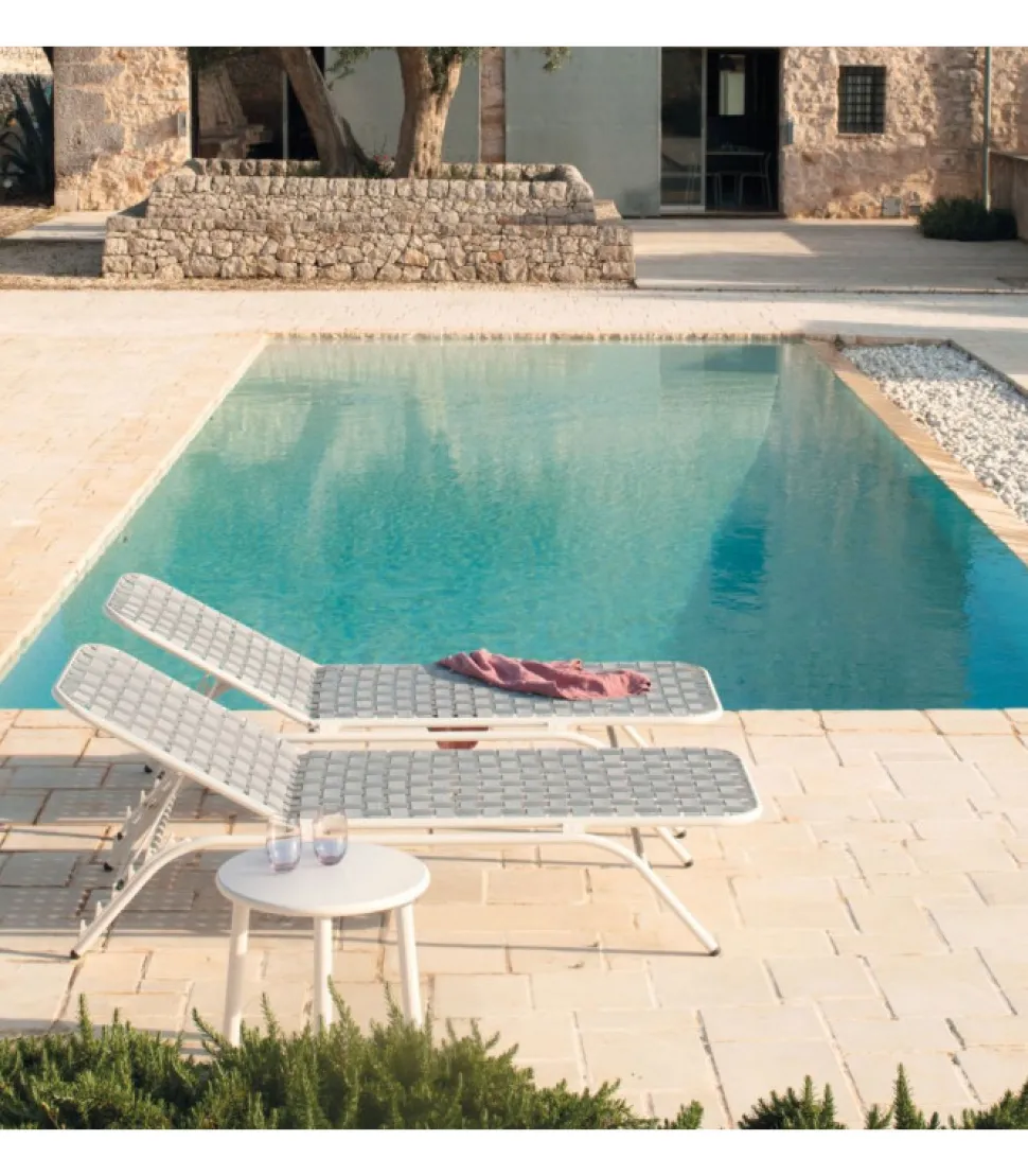 L’Intreccio Di Cinghie Elastiche, Accoppiate In Modo Innovativo Alla Struttura In Alluminio Dalle Linee Sofisticate, Da Vita Ad Un Insieme Dallo Stile Insolito Ed Eclettico E Dal Comfort Accentuato, Pienamente Fruibile Per Uso Esterno. Yard E Una Linea Completa Composta Da Sedia, Poltroncina, Tavoli Fissi, Poltrone Relax, Tavoli Bassi Di Diverse Dimensioni E Lettino. Completano La Collezione Tavoli Alti Di Varie Misure Per Ambienti Contract E Residenziali.