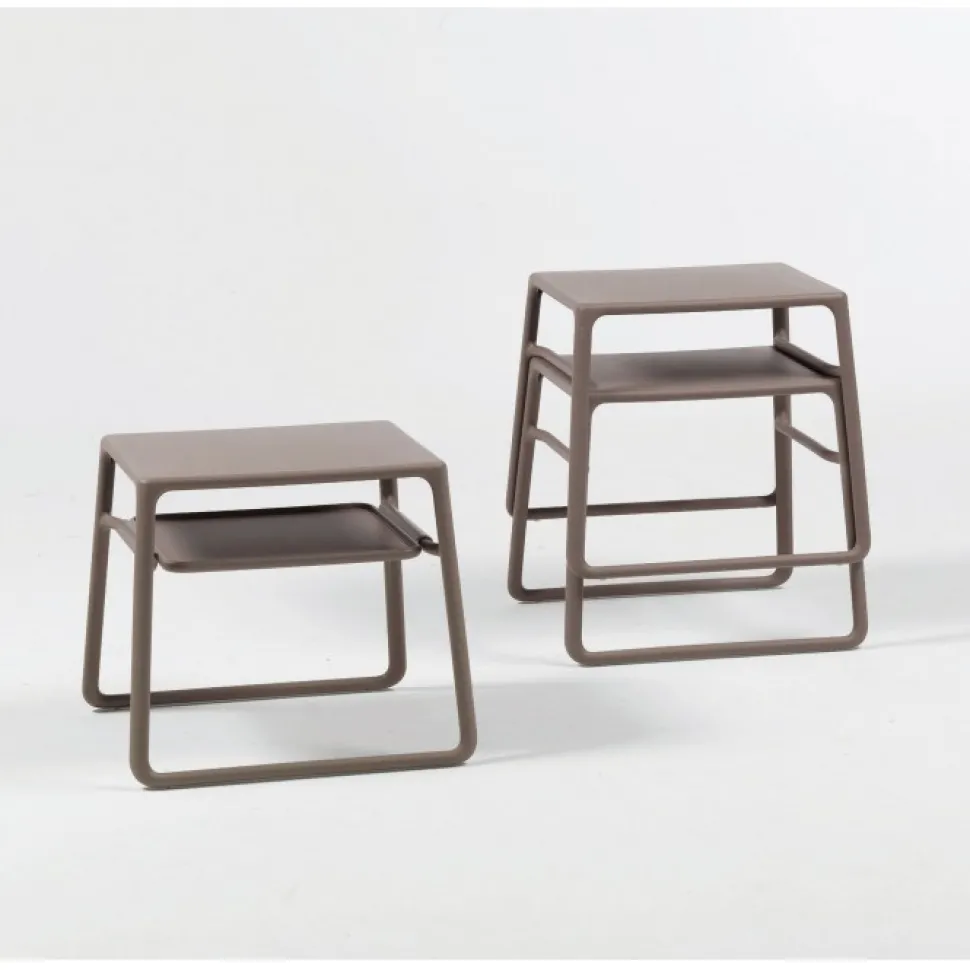 Pop, Tavolino Colorato Impilabile 39.5 X 47 Cm, Alto 38.5 Cm, In Polipropilene Rinforzato Fibra Di Vetro E Piedini Antisivolo Completo Di Vassoio. Si Accosta Perfettamente Ai Lettini Ed Alle Multiposizioni.