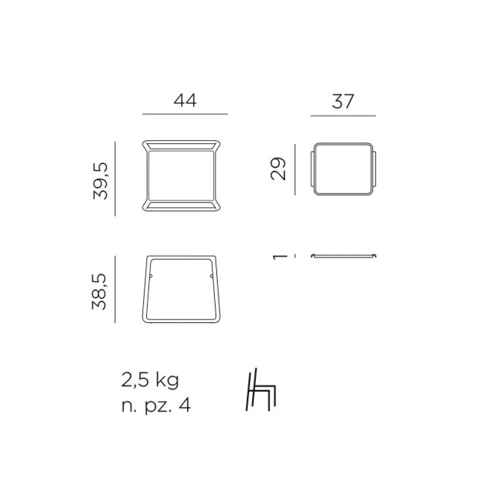 Dimensioni: Piano 39.5 X 44 Cm – H. 38.5 Cm