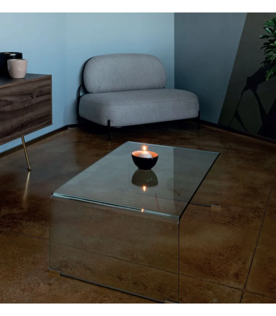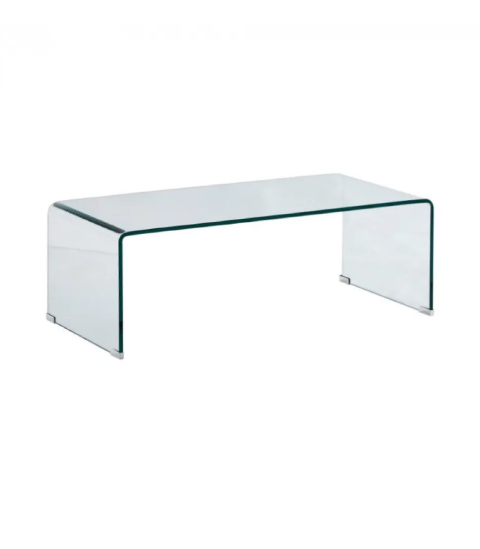 Tavolino Rettangolare In Vetro Temperato Curvato. Semplice Versatile In Tutti Gli Ambienti Della Casa E Comunita.