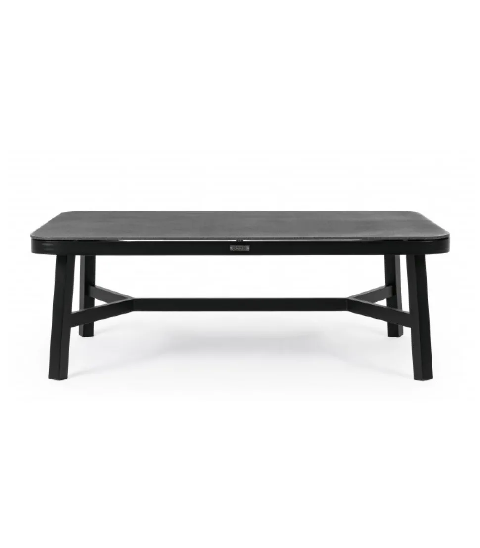 Struttura In Alluminio Verniciato A Polvere (Poliestere), Piano In Vetro Temperato Con Effetto Materico Di Pietra Naturale.