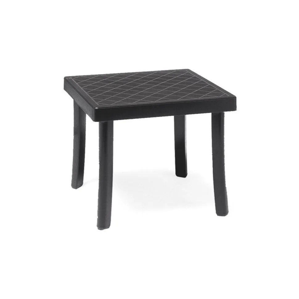 Rodi, Tavolino Quadrato Impilabile 46 X 46 Cm, Alto 40 Cm, In Polipropilene, Smontabile, Con 4 Gambe Tubolari E Piedini Antisivolo. Si Accosta Perfettamente Ai Lettini Ed Alle Multiposizioni.