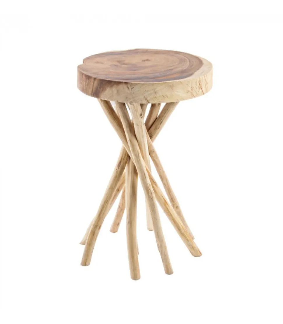 Tavolino Solidad 35X35Piano In Legno Mungur, Gambe Con Rami Di Teak.Dimensioni:35(L) – 35(P) – 50(H)