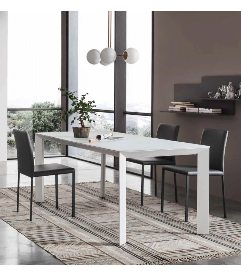 Il Piano In Vetro Bianco Alleggerisce I Tavoli Dalle Dimensioni Piu Importanti: Lo Spessore E Molto Sottile E La Brillantezza Della Superficie Rende Luminoso L’Arredo E Anche La Stanza Che Lo Contiene. Si Consigliano Sedie A Contrasto Per Creare Uno Spazio Conviviale Dal Grande Stile.