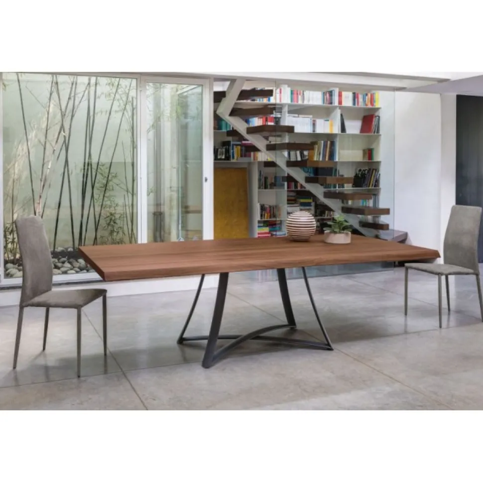 Tavolo Big Bang, E Un Originale Tavolo Dal Gusto Moderno E Di Grande Personalita. Il Basemento In Acciaio Verniciato A Crociera E Curvato Da A Big Bang Un Forma Nuova E Gradevole. Disponibile Con Piani In Legno, Cristallo, Cristallo Velvet, E Super Ceramica.