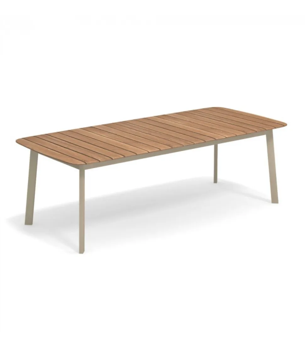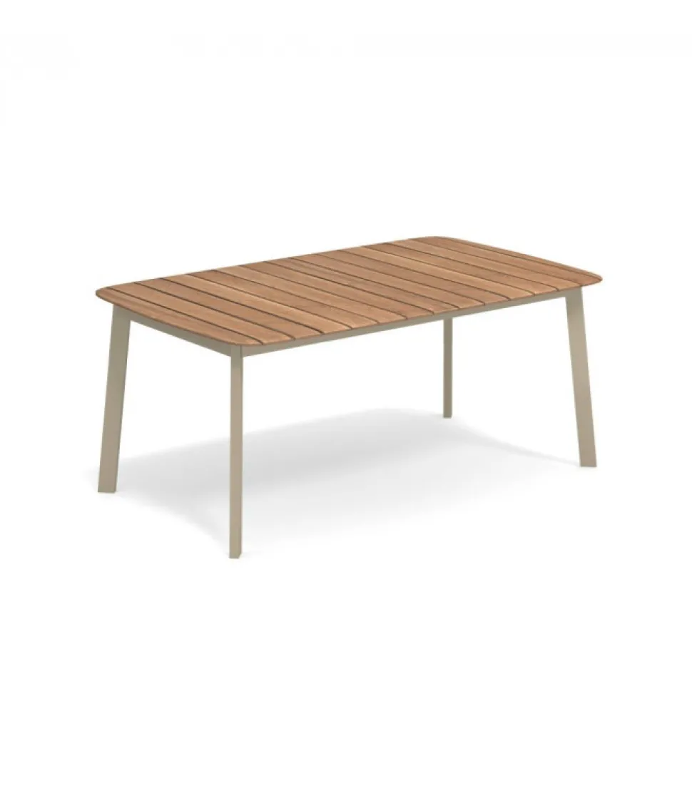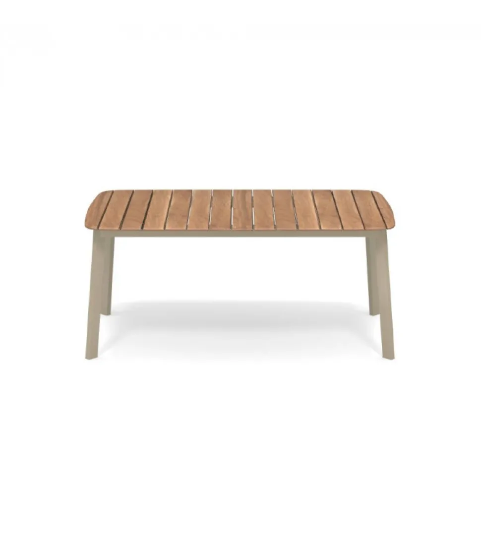 Tavolo Da Giardino Con Piano Rettangolare In Teak, La Struttura E In Alluminio Verniciato, E Disponibile In Quattro Colori E Due Dimensioni Differenti.
