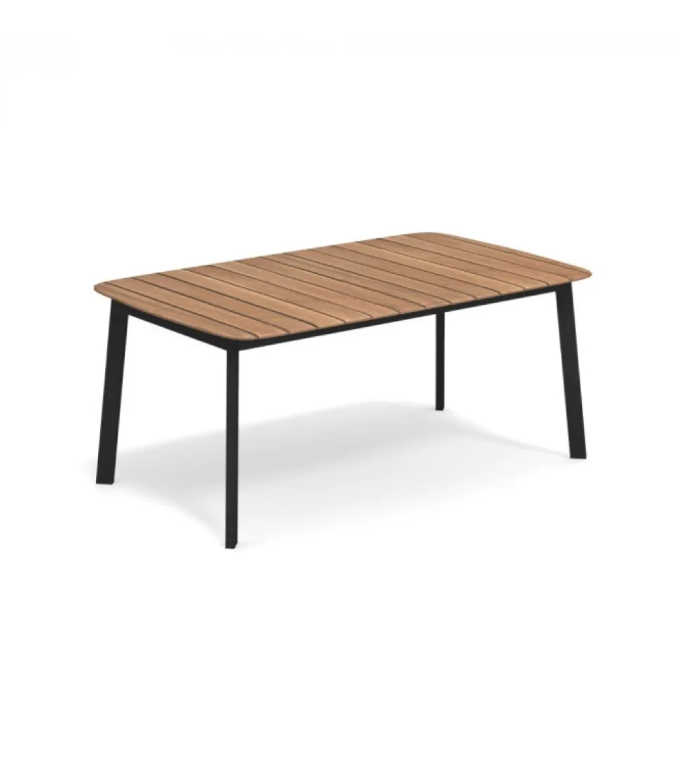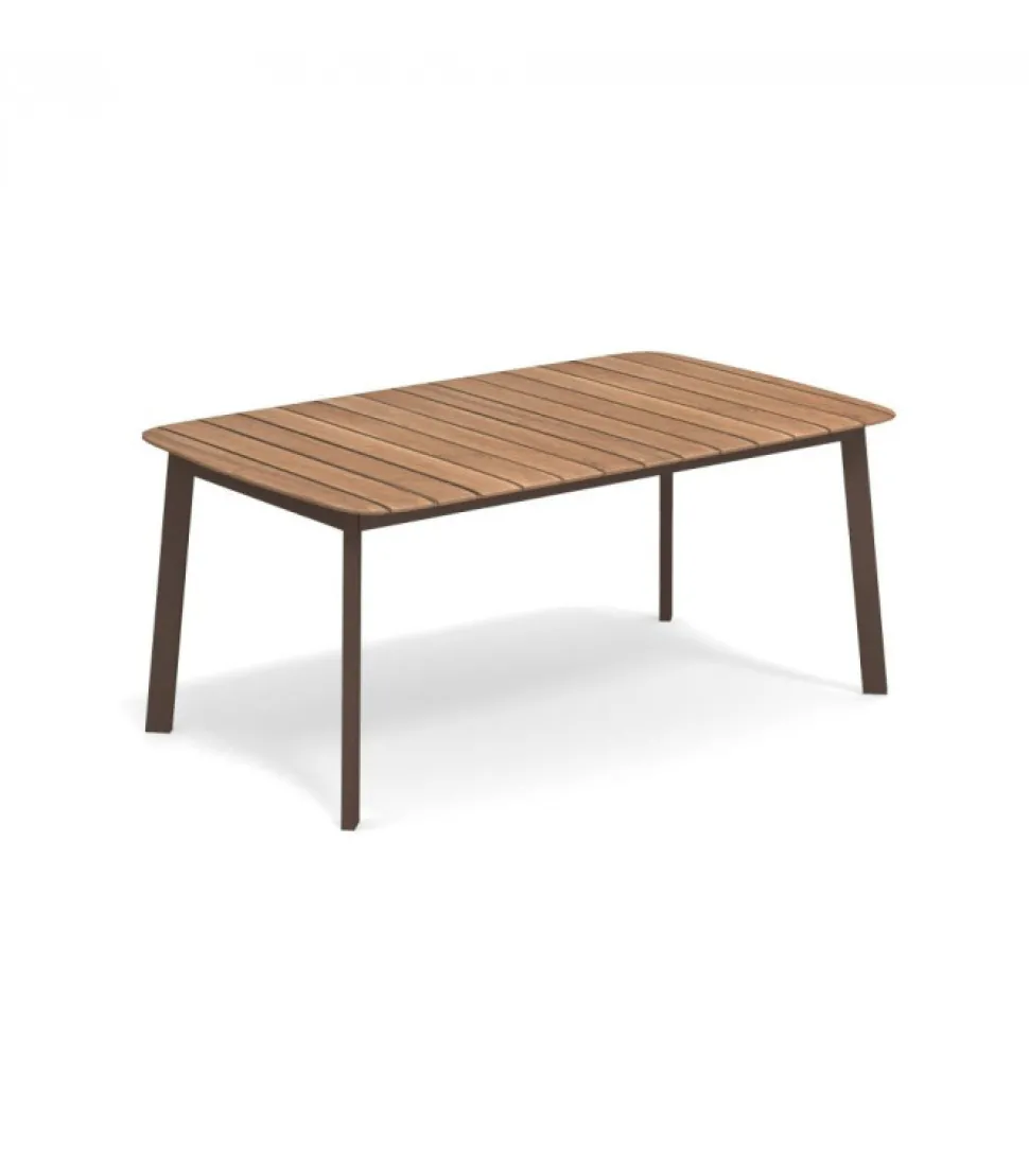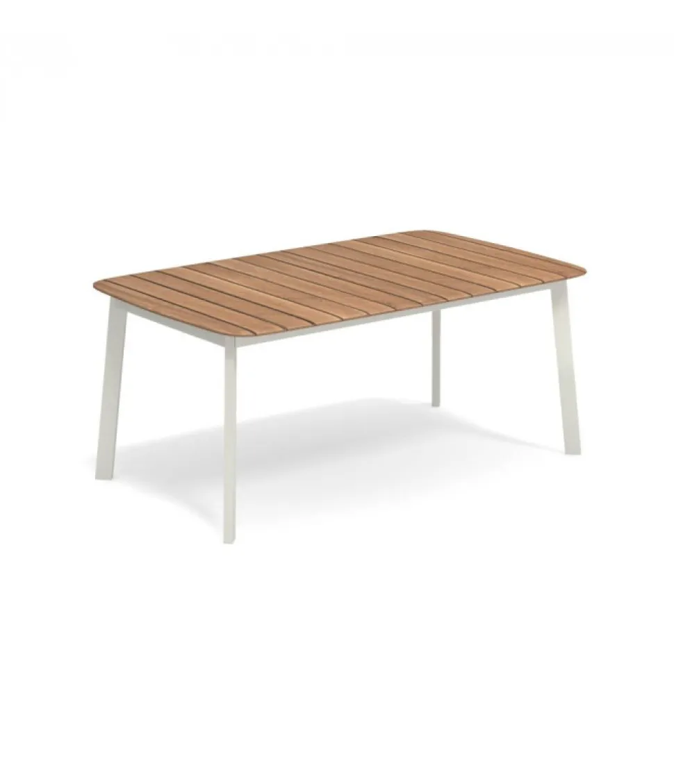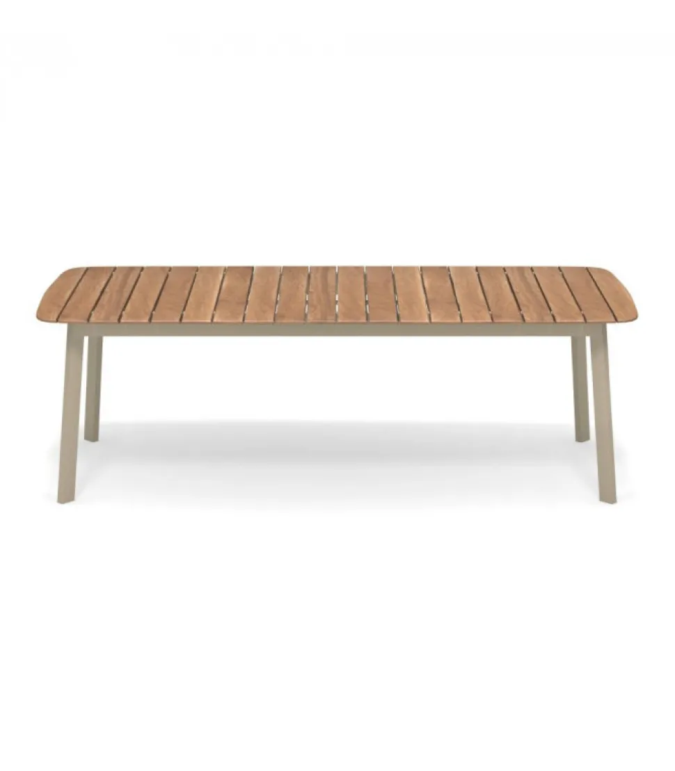 Tavolo Da Giardino Con Piano Rettangolare In Teak, La Struttura E In Alluminio Verniciato, E Disponibile In Quattro Colori E Due Dimensioni Differenti.