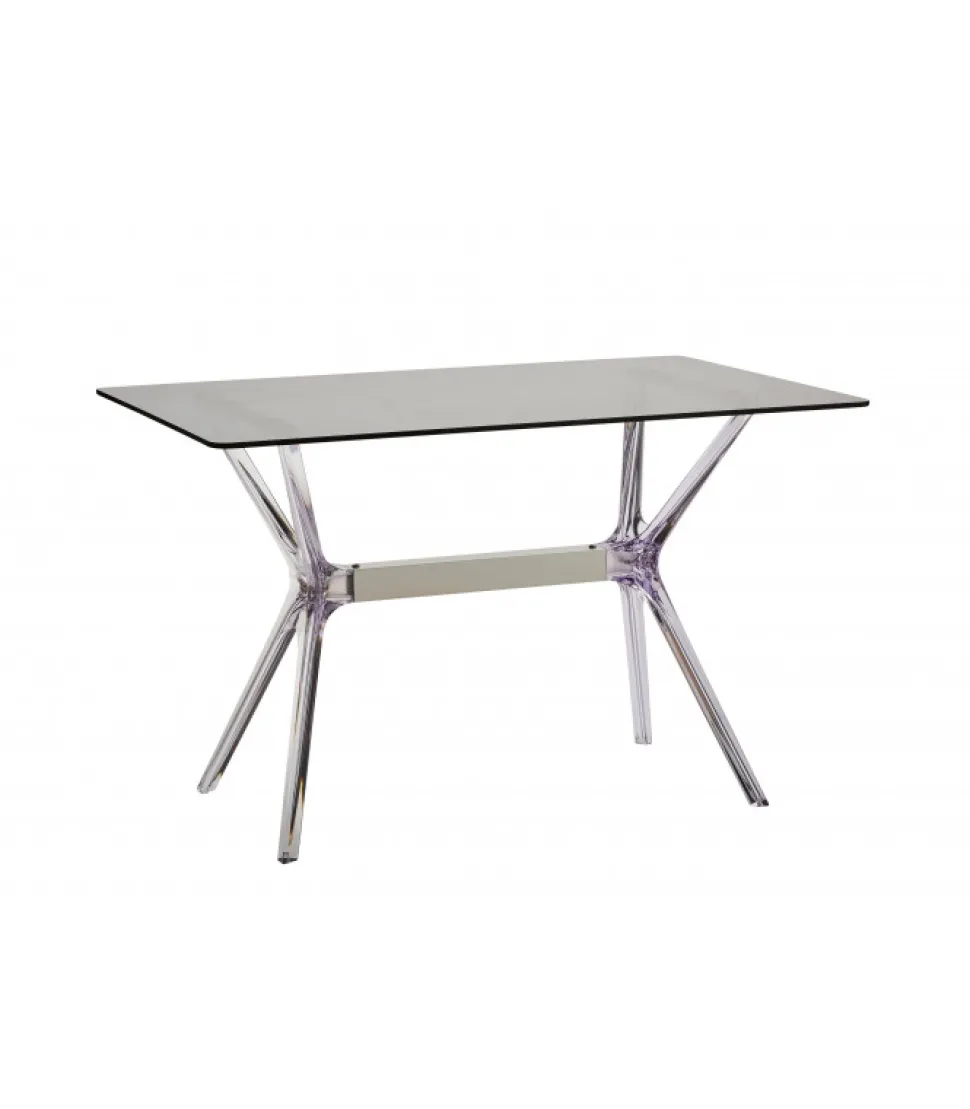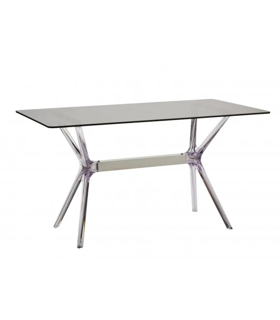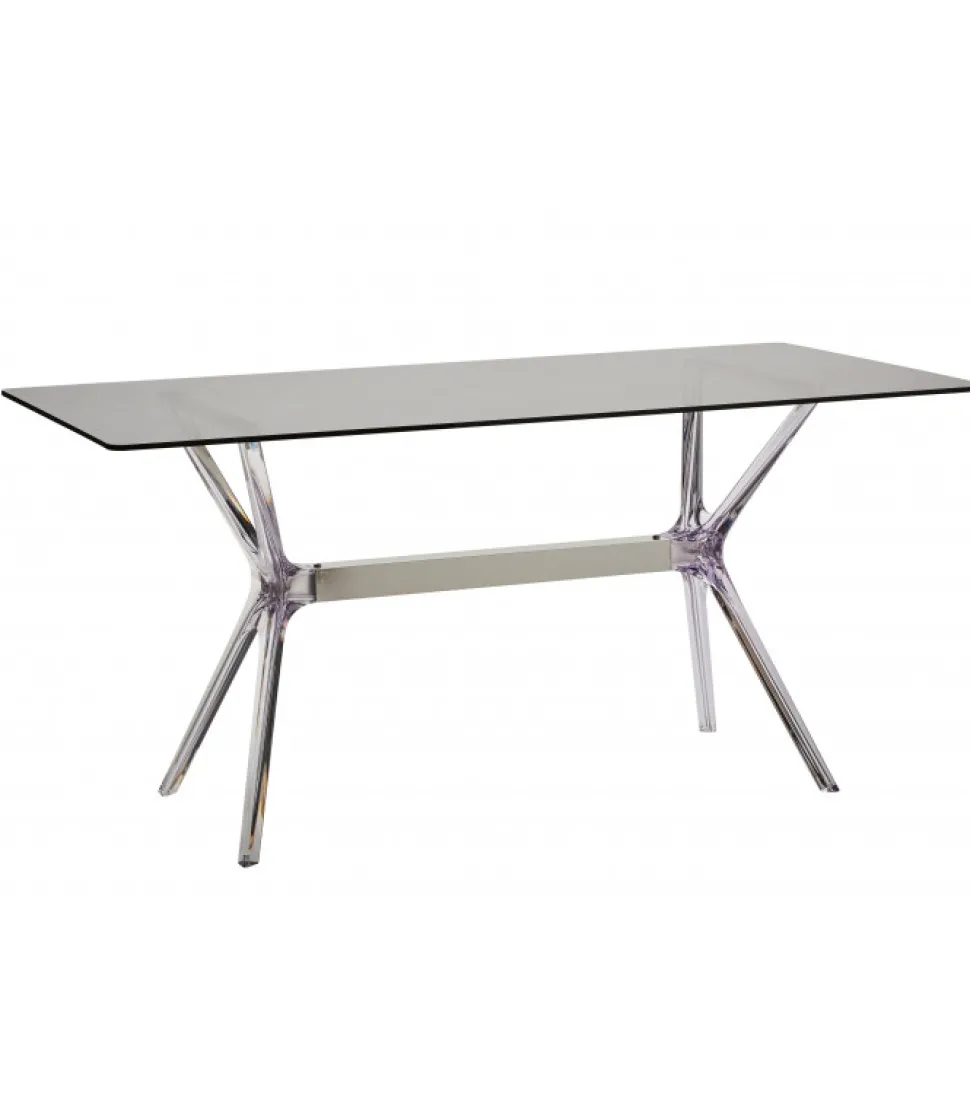 Darren, Moderno Tavolo Con Struttura In Polipropilene Trasparente E Piano In Vetro Trasparente O Trasparente Fume. Grazie Alle Sue Linee Eleganti Si Abbina Perfettamente Ad Uno Stile Moderno.