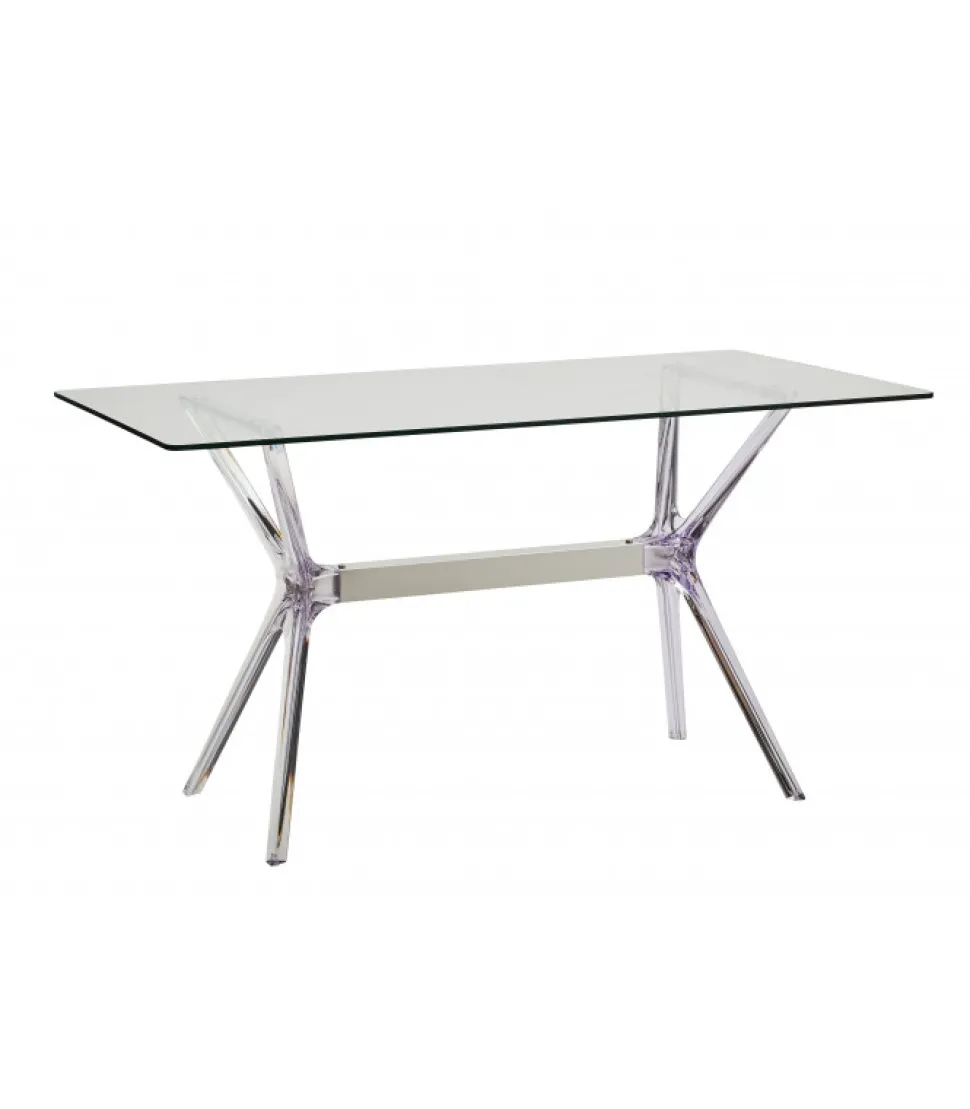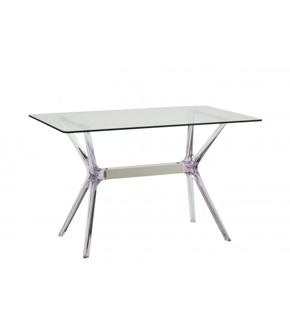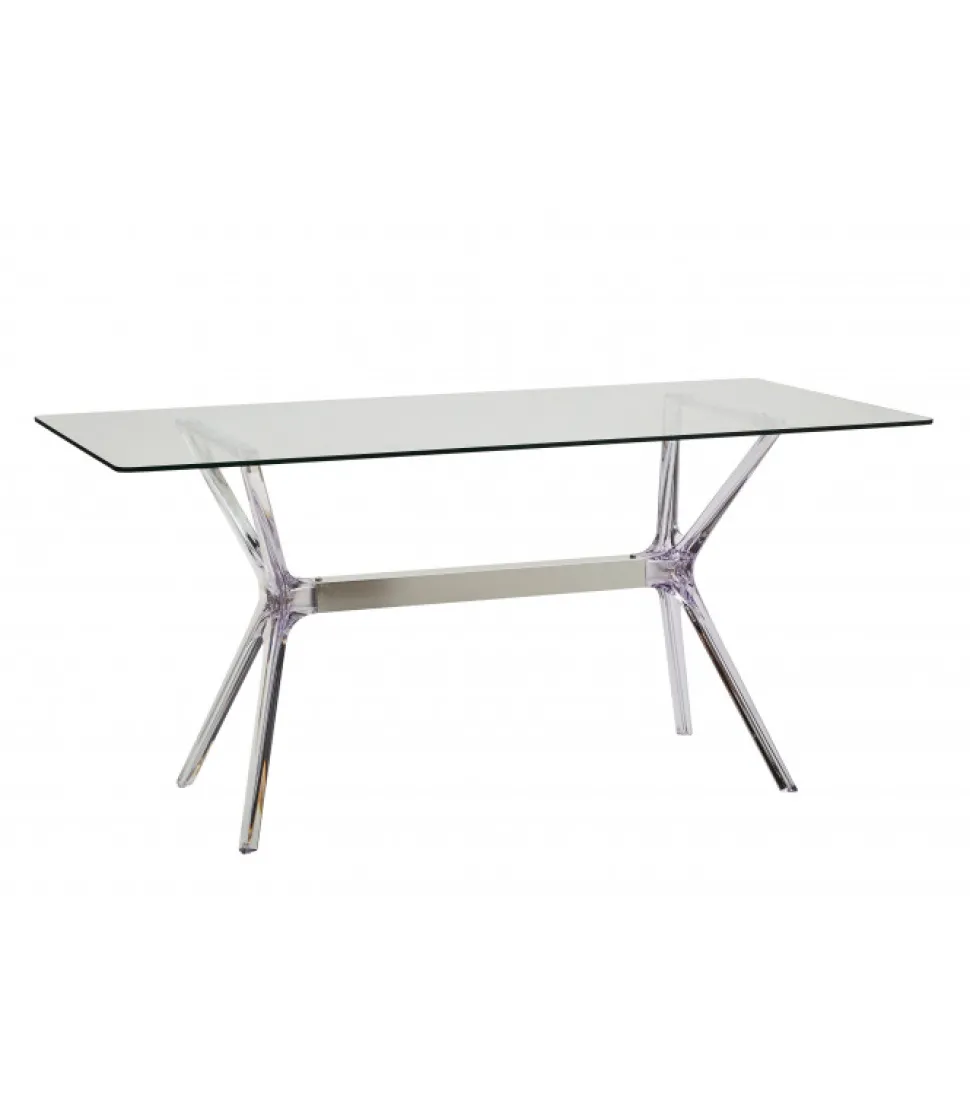 Darren, Moderno Tavolo Con Struttura In Polipropilene Trasparente E Piano In Vetro Trasparente O Trasparente Fume. Grazie Alle Sue Linee Eleganti Si Abbina Perfettamente Ad Uno Stile Moderno.