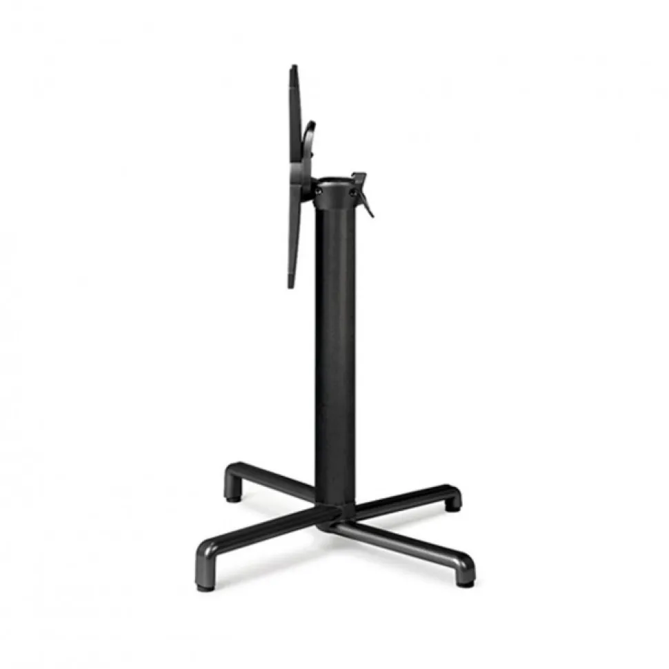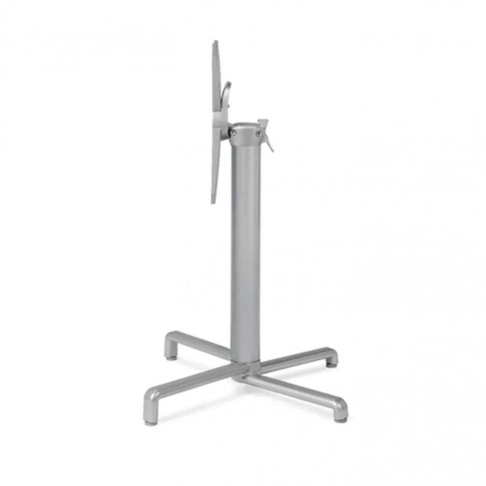 Basamento In Alluminio Pressofuso Verniciato E Munito Di Meccanismo Per Ribaltare Il Piano, Consentendo Di Riporre Il Tavolo In Spazi Ridotti E Di Accostarli (Impilarli).