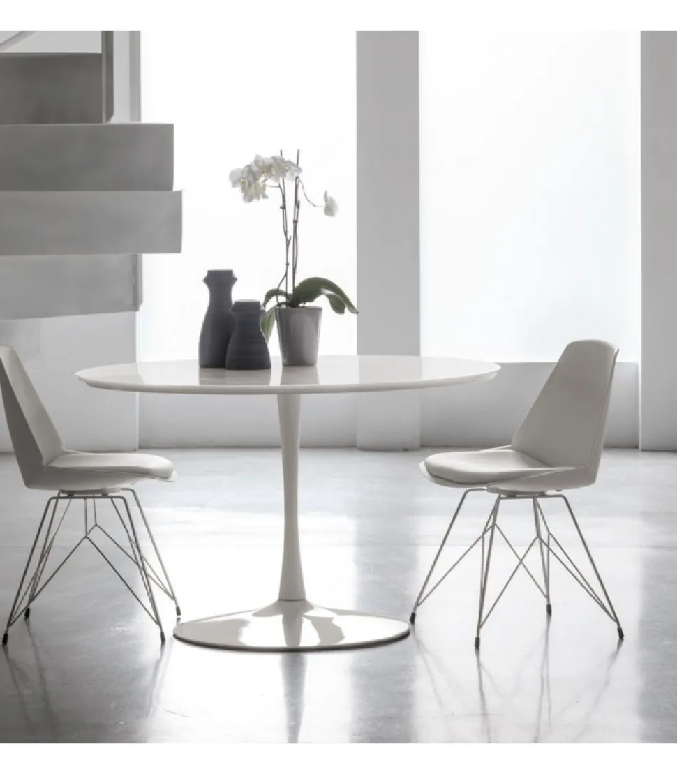 Flute Diam. 120, E Un Tavolo Rotondo Fisso Con Struttura In Metallo Verniciato E Piano In Mdf Laccato. La Sua Forma Ed Il Suo Design Lo Rendono Un Tavolo All’Avanguardia, Pratico E Facilmente Abbinabile.