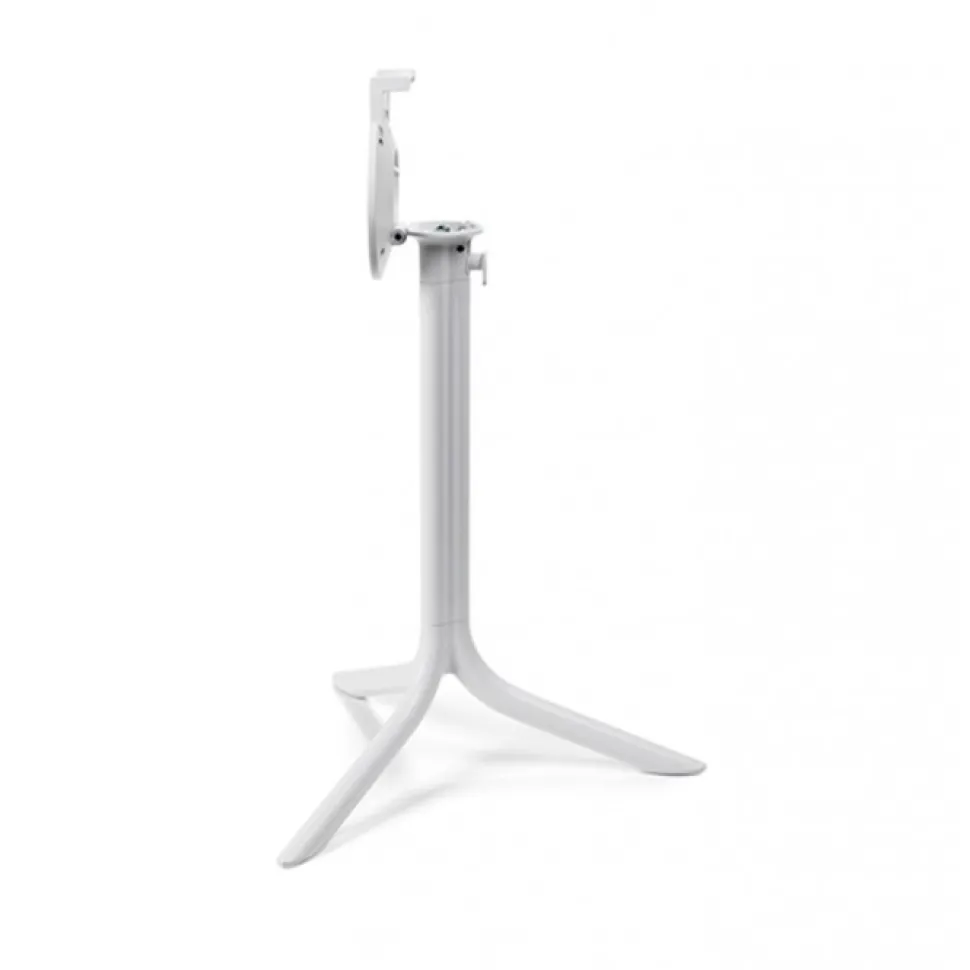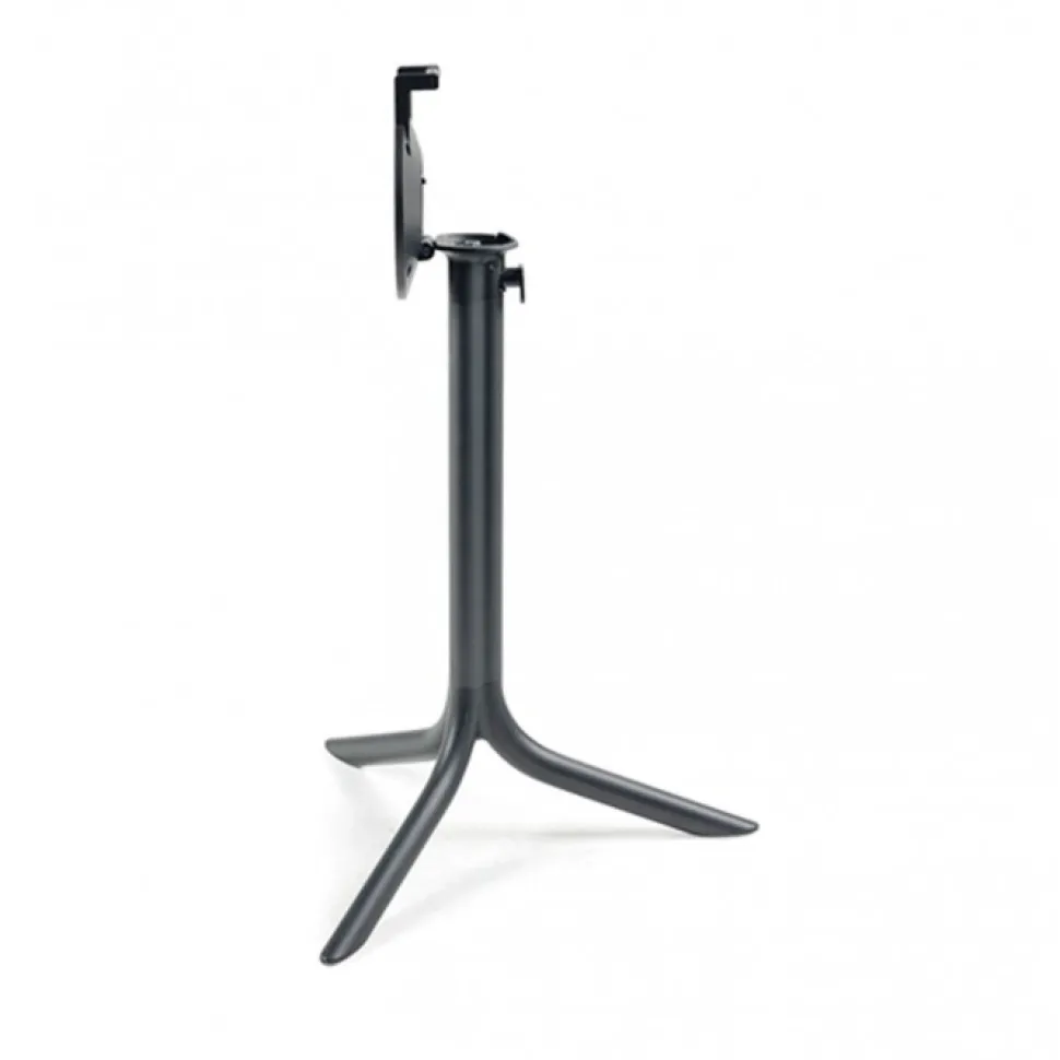 Basamento In Alluminio Pressofuso Verniciato E Munito Di Meccanismo Per Ribaltare Il Piano, Consentendo Di Riporre Il Tavolo In Spazi Ridotti E Di Accostarli (Impilarli).