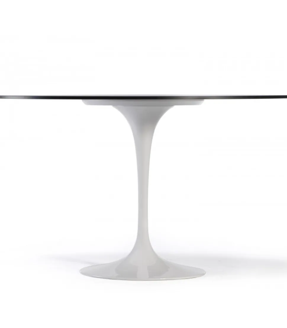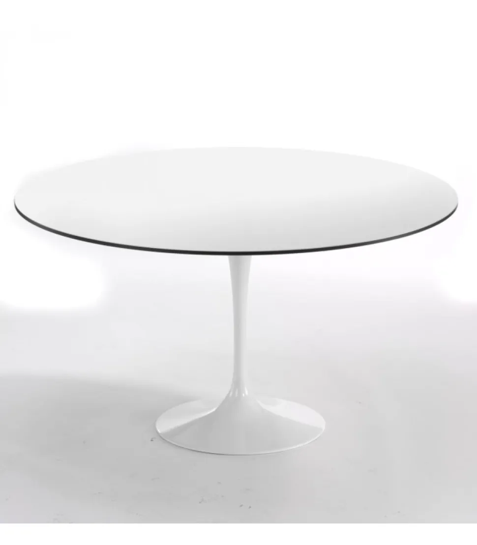 Tavolo Saturno Con Piano Rotondo (Disponibile In 7 Dimensioni E 3 Colori) In Compactop E Struttura In Alluminio Verniciato Di Bianco. La Base Della Struttura E Tonda E Varia La Dimensione Al Variare Del Diametro Del Piano.