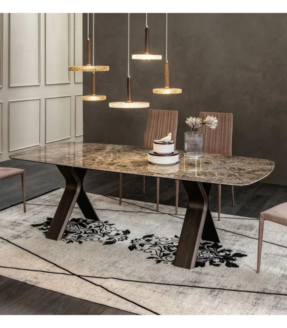 Tavolo Fisso O Allungabile Con Base In Legno Termo Curvato, Pensata Per Essere Abbinata Ad Eleganti Piani In Vetro O Gres Porcellanato. Le Linee Piu Semplici Possono Essere Le Piu Eleganti E Senza Tempo.