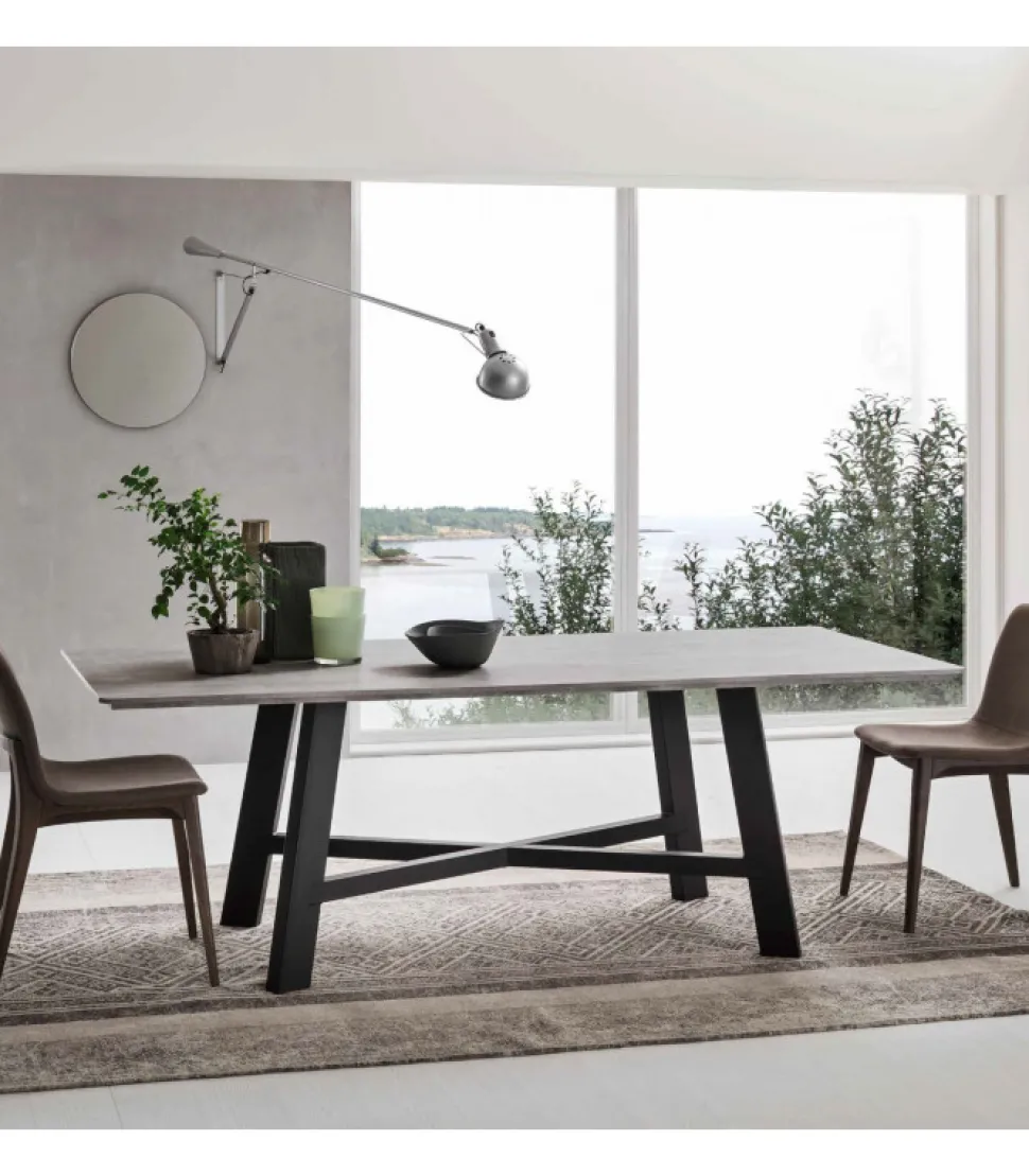 Tavolo Con Piano Fisso Rettangolare, Disponibile In Melaminico (Spesso 38 Millimetri, Nelle Finiture Calacatta, Ash Stone E Nero Marquinia E Spesso 34 Millimetri), In Frassino Olivato Massiccio (Spesso 35 Millimetri) E In Rovere Massiccio (Spesso 35 Millimetri). Il Basamento E In Metallo Nero Opaco. Il Piano E Disponibile In Tre Diverse Dimensioni, L’Altezza Totale Del Tavolo Varia Al Variare Dello Spessore Del Piano.