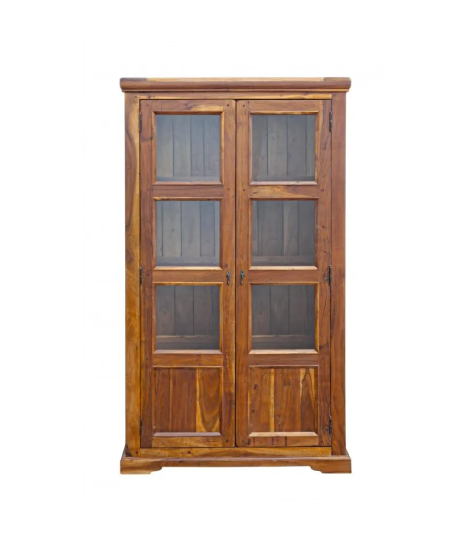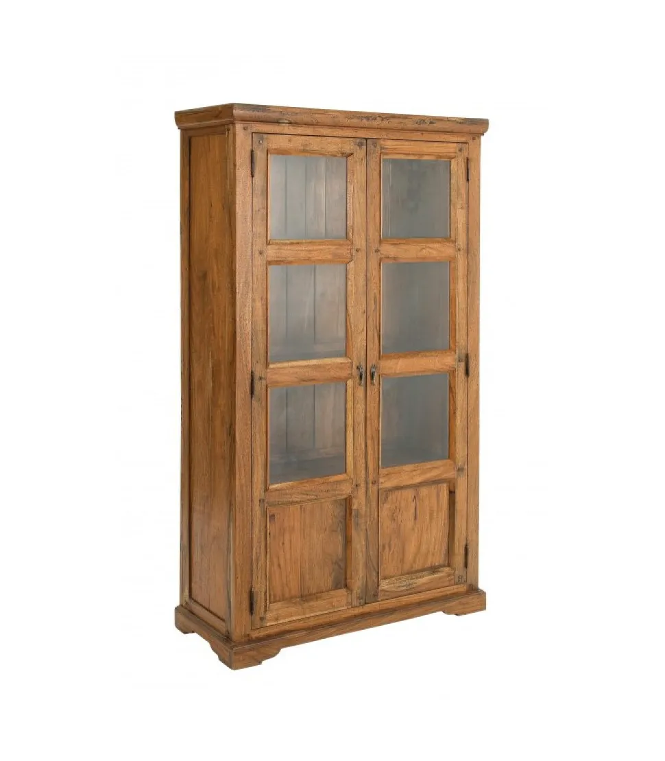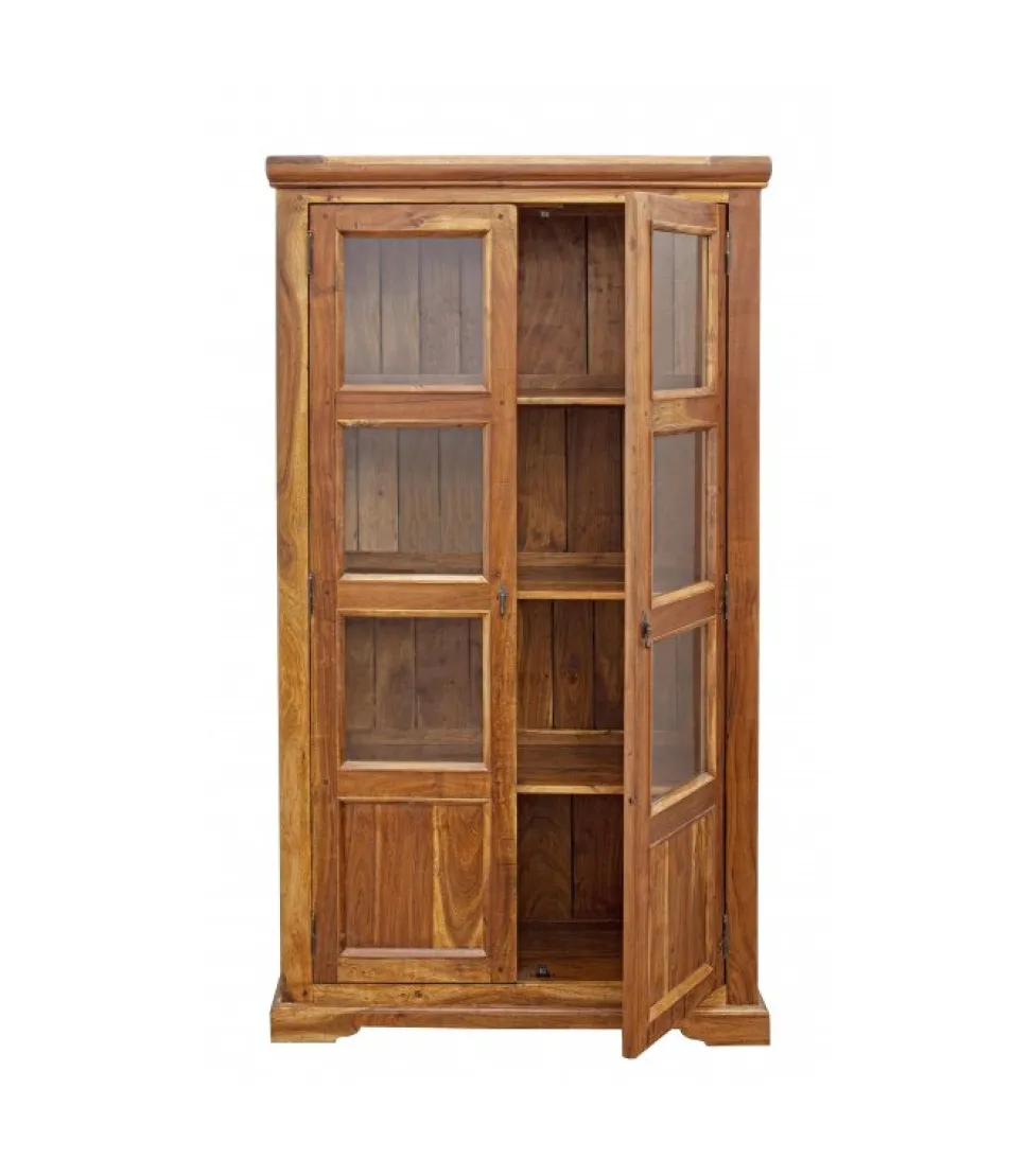 Vetrina Chateaux Biglegno D’Acacia Indiano Massiccio, Finitura Rustica E Anticata A Base Di Nitrocellulosadimensioni:100(L) – 40(P) – 180(H)