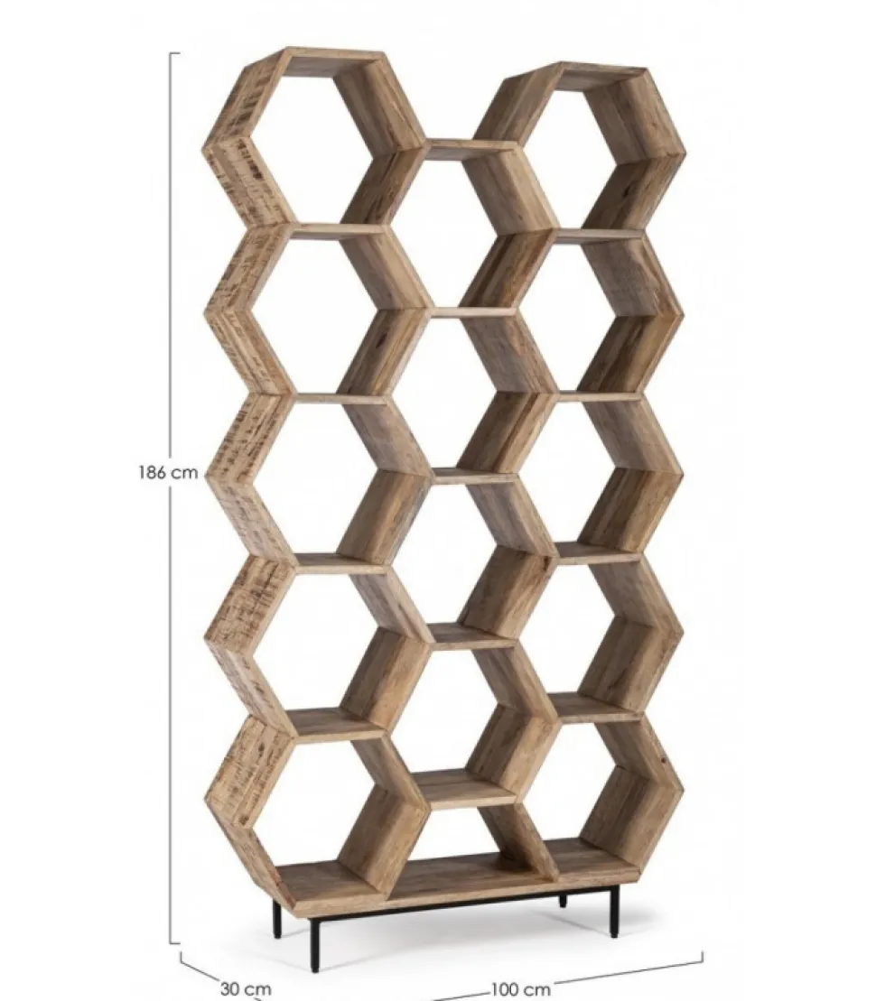 Libreria Wahida Struttura In Legno Di Mango, Finitura A Base Di Vernice Poliuretanica. Base In Acciaio Verniciato A Polvere Epossidica. – Dimensioni In Cm. 100 (L.) 30 (P.) 186 H