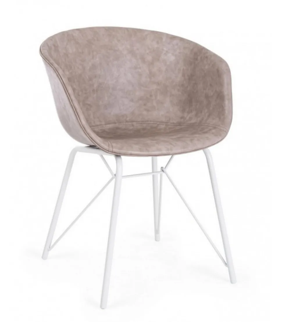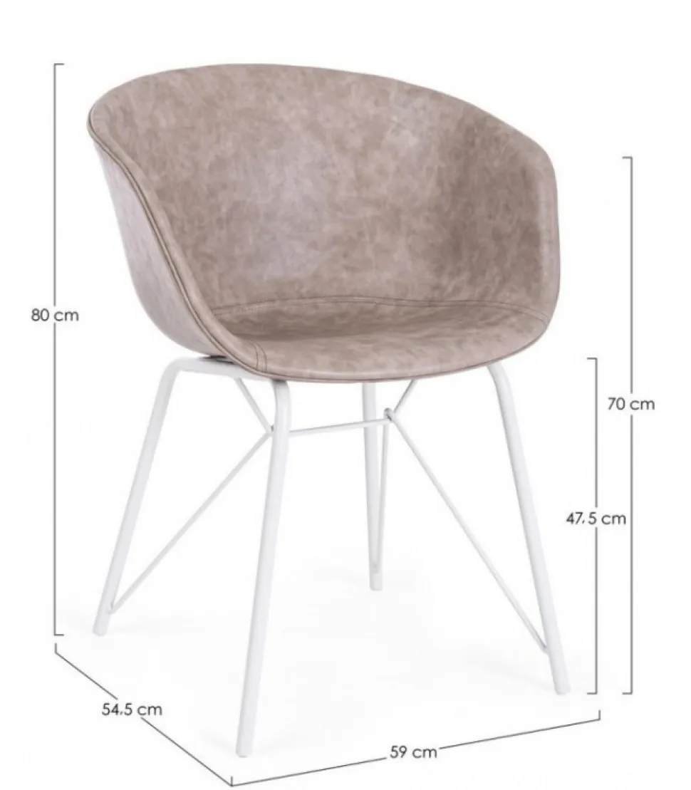 Sedia Warhol Bianco Pu Beige Vintage Gambe In Acciaio Verniciato A Polvere Epossidica. Seduta In Polipropilene (Pp) Rivestito In Similpelle. Gambe Da Assemblare. – Dimensioni In Cm. 59 (L.) 54,5 (P.) 80 ( H.) 47,5 ( H1) – 70 ( H2)