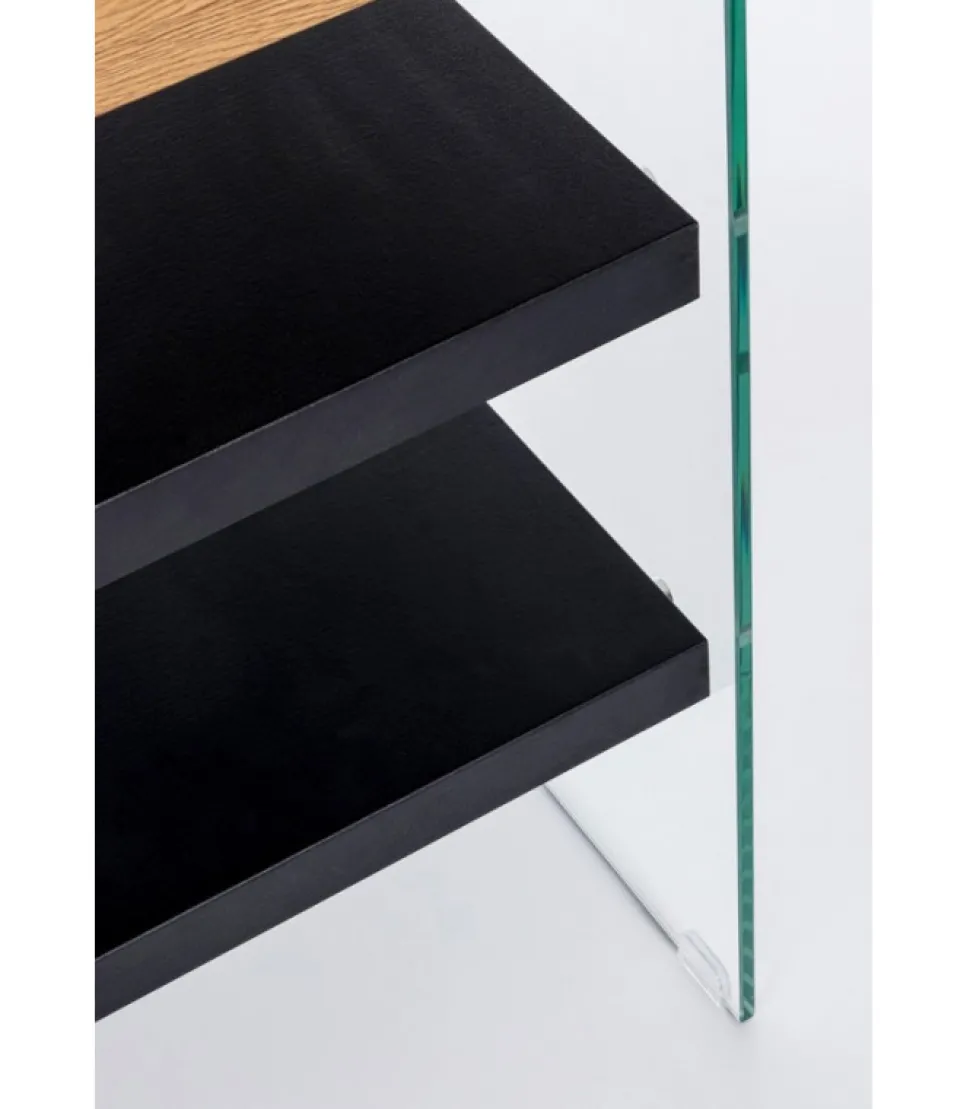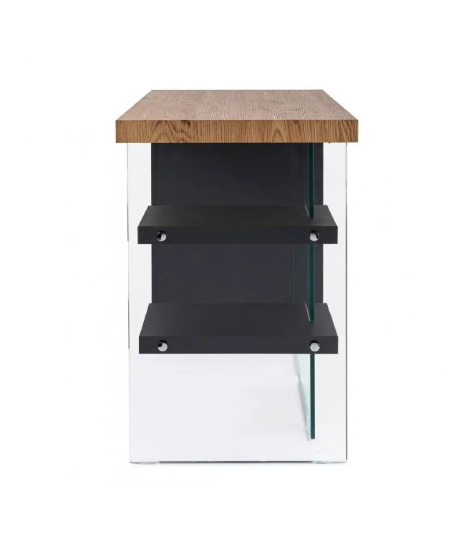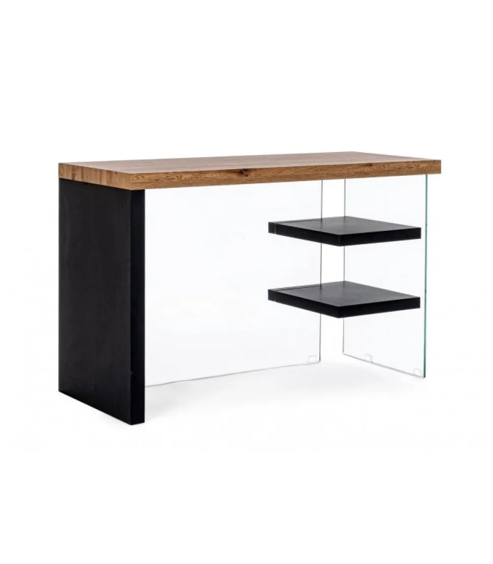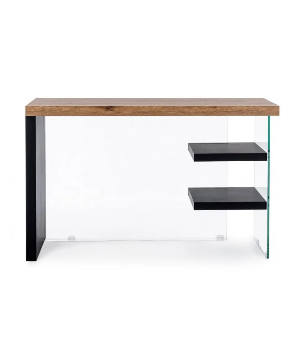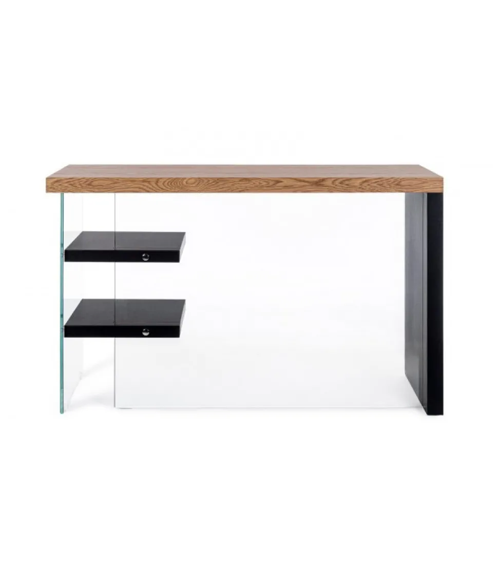 Scrivania 2M Line Wood Nero 120X50 Piano, Mensole E Fianco Sinistro In Mdf Rivestito Con Carta Melaminica Effetto Legno. Schiena E Fianco Dx In Vetro Temperato Spessore 10Mm. Portata Max Mensole 2Kg. Da Assemblare. – Dimensioni In Cm. 120 (L.) 50 (P.) 76 H