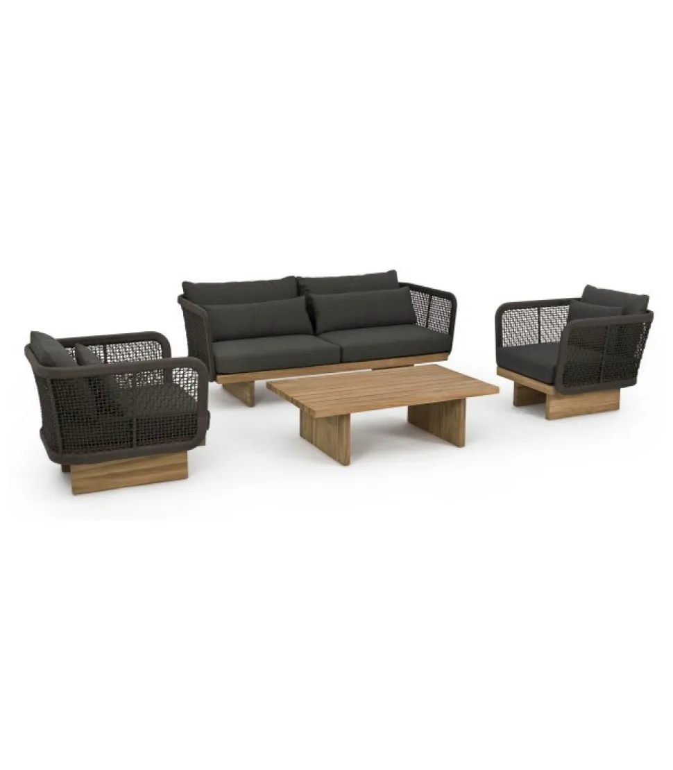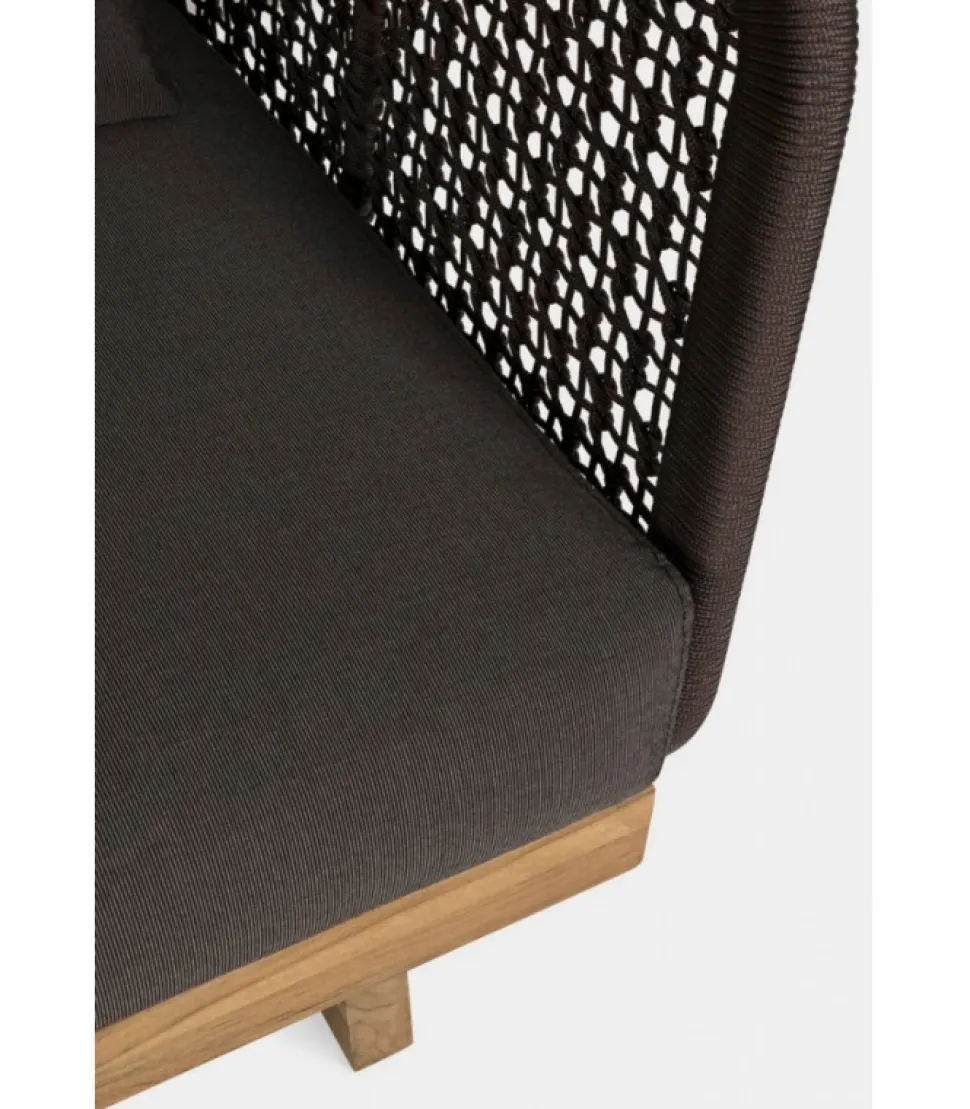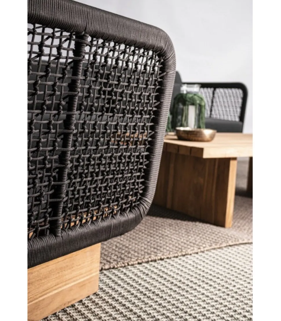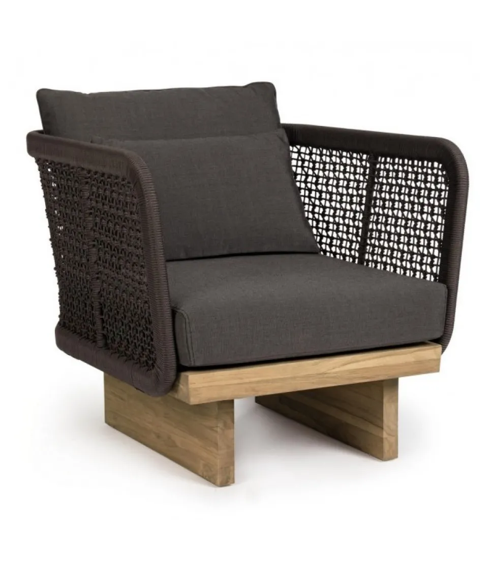 Poltrona C-C Xylia Dark Struttura In Alluminio Verniciata A Polvere (Poliestere). Seduta E Gambe In Teak – Svlk (Legno Certificato Proveniente Da Foreste Sostenibili) Con Finitura Rustica. Intreccio Per Esterno In Corda (Polipropilene), Idrorepellente E Resistente Ai Raggi Uv.Cuscini Sfoderabili Con Tessuto Sunbrella (100% Acrilico), Idrorepellenti E Resistenti Ai Raggi Uv. Imbottitura Per Esterno Quick Dry Foam (Antiumidita’). – Dimensioni In Cm. 76 (L.) 83.5 (P.) 80 H – 38.5 ( H1) 70.5 H2