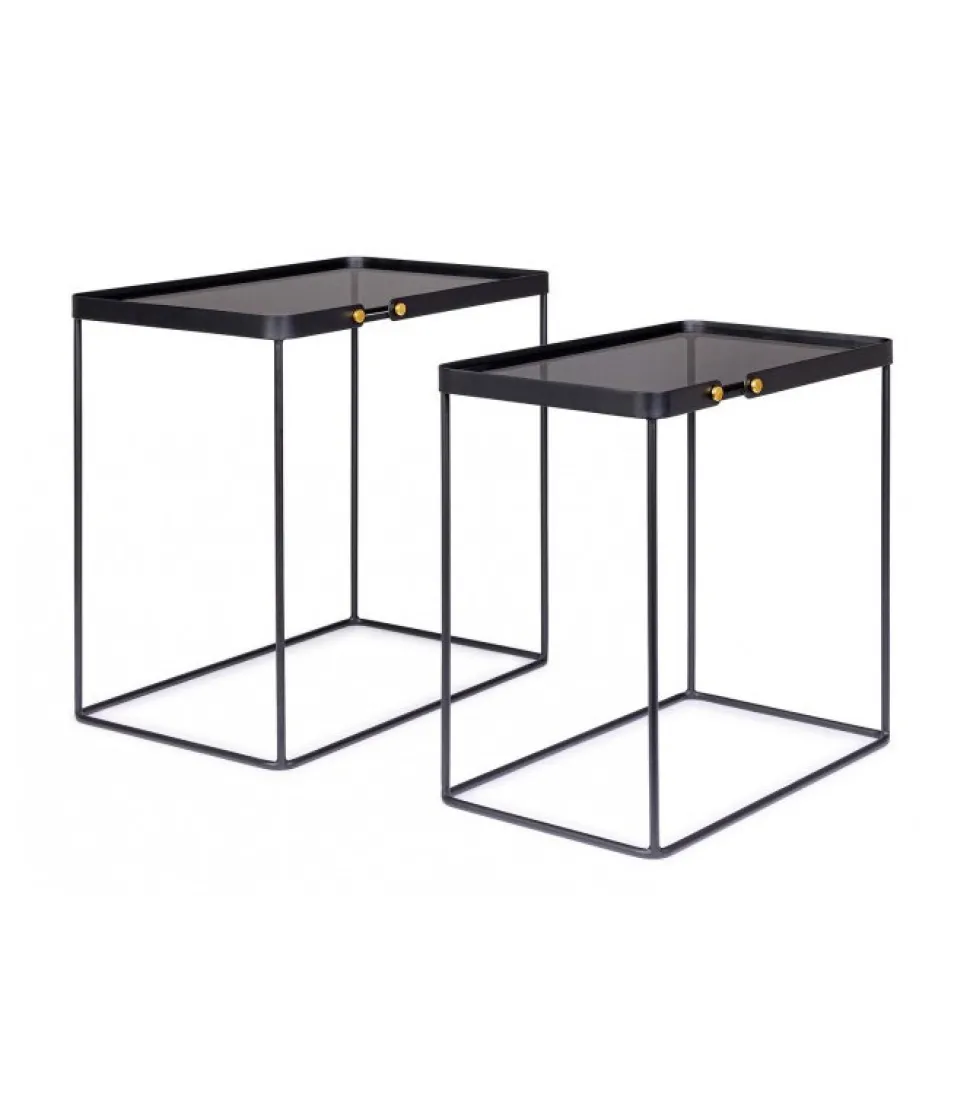 Set2 Tavolino Zeina Rett J88 Struttura In Acciaio, Verniciata A Polvere Epossidica. Piano In Vetro Temperato. – Dimensioni In Cm. 54 (L.) 31 (P.) 52 H; 59.5 (L.) 36 (P.) 57 H